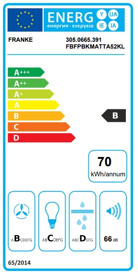 • Energetická třída: B (Roční spotřeba: 70.2 kWh).
