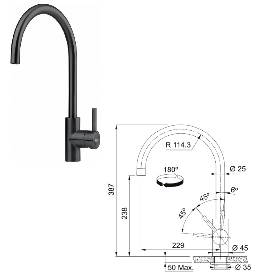 Franke FC 0044.502 EOS NEO Černá Dřezová baterie bez sprchy – Elegantní a funkční