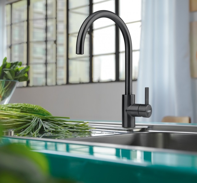Elegantní design: Oblý výtok a černá barva dodávají baterii moderní vzhled.