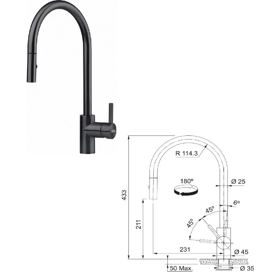 Její oblé ramínko a precizní zpracování dodají Vaší kuchyni moderní a nadčasový vzhled. Díky otočnému ramínku o 180° a praktické výsuvné koncovce s perlátorem získáte maximální flexibilitu a pohodlí při práci u dřezu.