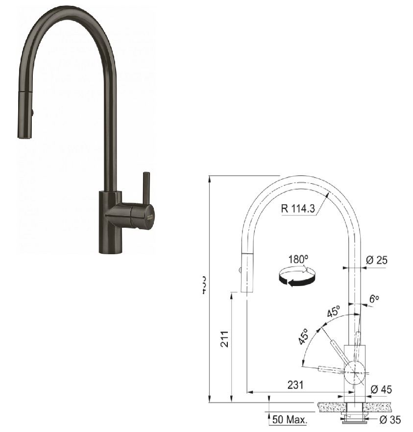 Její oblé ramínko a precizní zpracování dodají Vaší kuchyni moderní a sofistikovaný vzhled. Díky otočnému ramínku o 180° a praktické výsuvné koncovce s perlátorem získáte maximální flexibilitu a pohodlí.