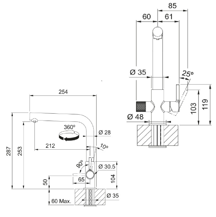 • Průtok filtrované vody: 2,8 l/min. (při 3 bar)