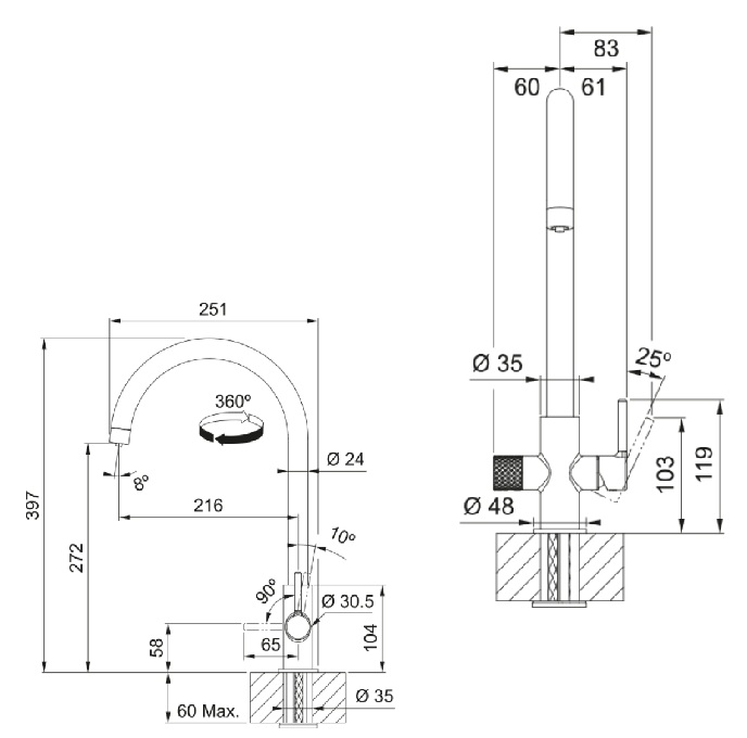 • Design a provedení: Matná černá barva, tělo z Mosazi. Ramínko je oblé a otočné o 360° pro maximální flexibilitu.