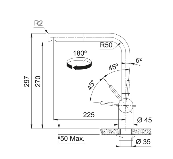 • Otočná o 180°: Pohodlné používání u dřezů s více komorami.
