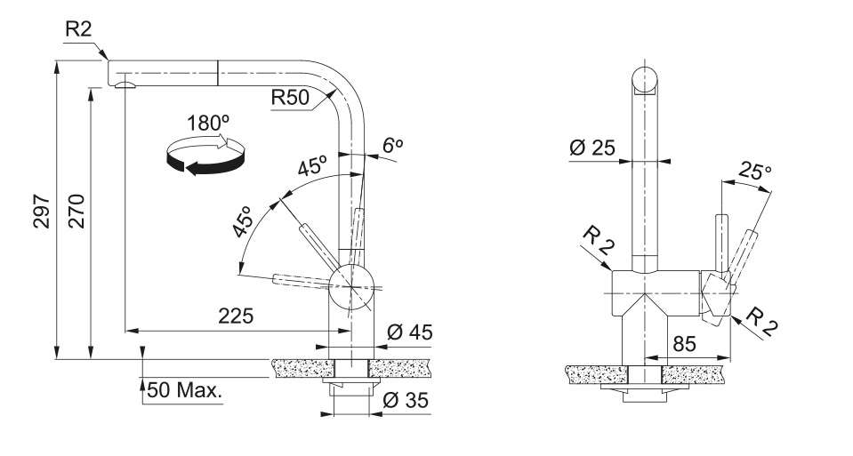 • Otočná o 180°: Pohodlné používání u dřezů s více komorami.