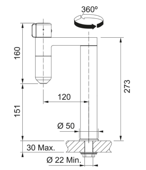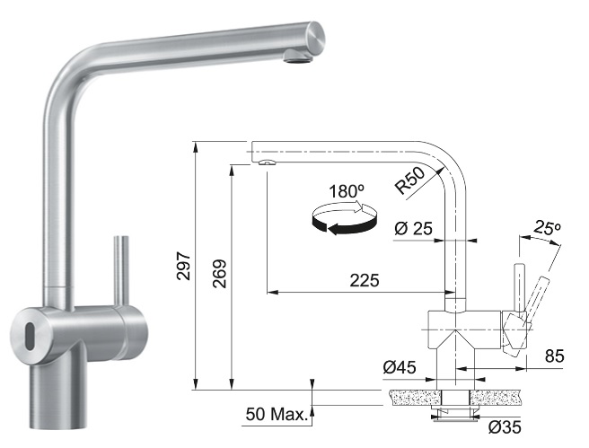 • Otočná o 180°: Pro flexibilní použití a snadné mytí dřezu.