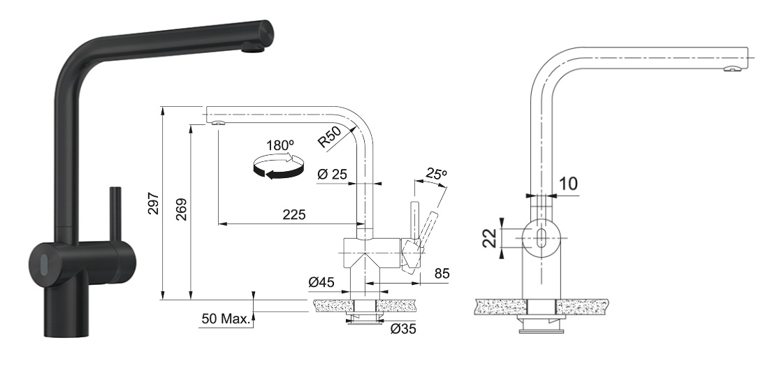 • Hybridní ovládání: Vyberte si mezi bezdotykovým senzorem a klasickou páčkou podle aktuální situace. Bezdotykové ovládání je ideální pro maximální hygienu a pohodlí při vaření, zatímco páčka umožňuje tradiční ovládání průtoku a teploty vody.