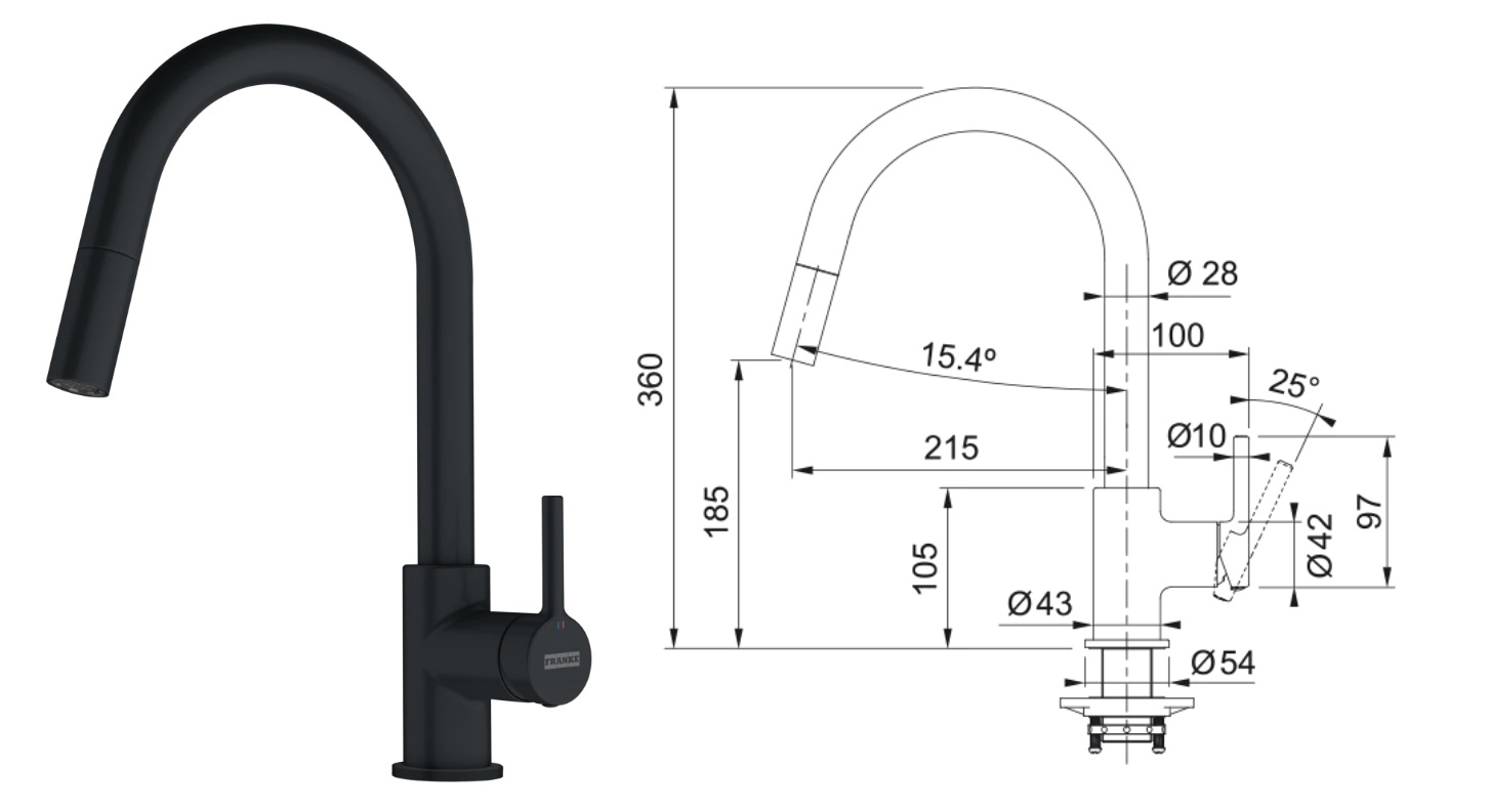 Franke FC 6051.901 LINA Dřezová baterie s vytahovací koncovkou Matná černá
