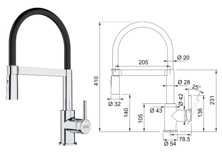 Franke FC 6085.031 Lina + AKCE | Dřezová Baterie se Sprchou Chrom Černá, 115.0626.085