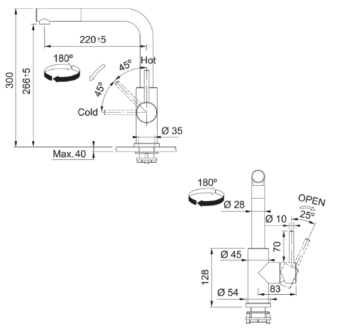 • Ramínko: Otočné o 180° – ideální pro velkoprostorové nebo dvojité dřezy.