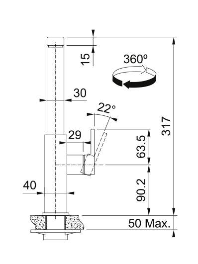 • Otočná o 360°: Maximální flexibilita pro dřezy s jednou i více komorami.