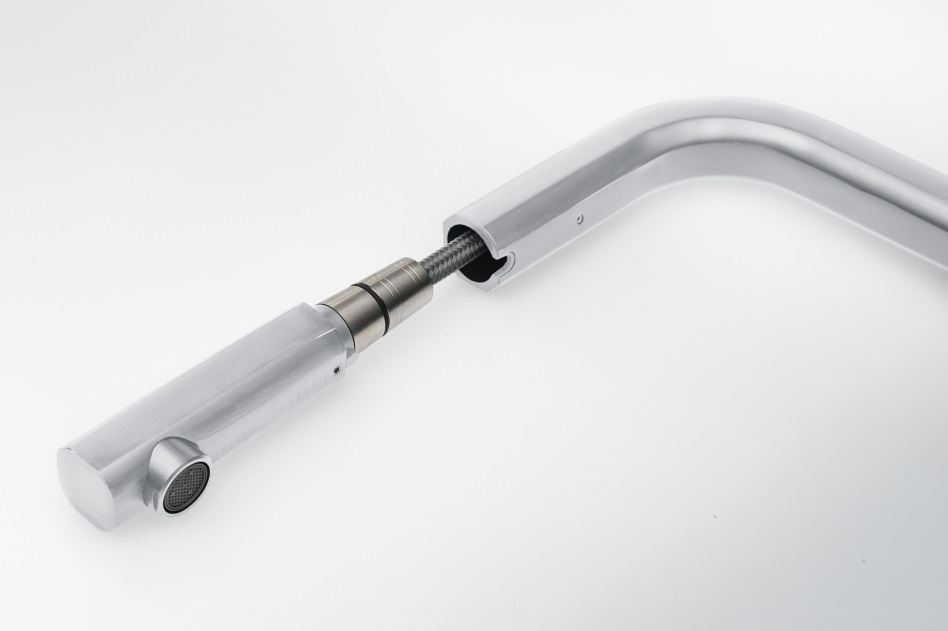 • Vytahovací koncovka s perlátorem: Usnadňuje mytí velkých nádob a čištění dřezu. Perlátor Honeycomb pro příjemný proud vody.