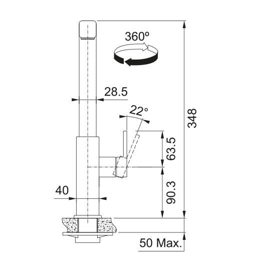 • Otočná o 360°: Maximální flexibilita pro dřezy s jednou i více komorami.