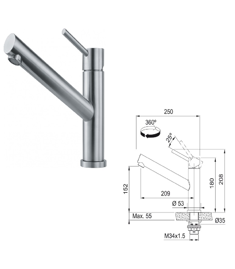 FRANKE Dřezová baterie FRANKE FC 9290.501 ORBIT Celonerez 115.0569.290, sprcha. ramínko střední
