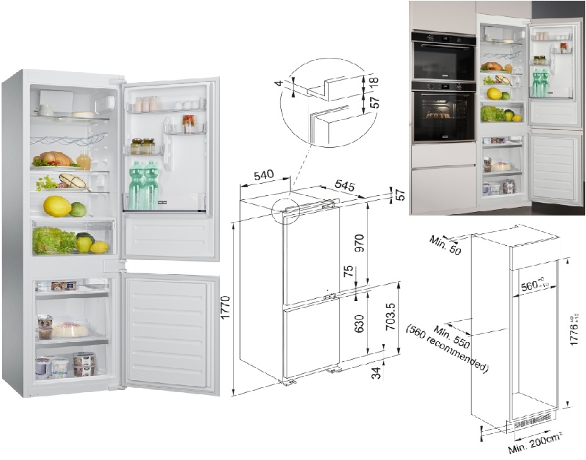 TEKA RBF 73355 FI: Vestavná kombinovaná chladnička (178 cm). Třída E, velmi tichý provoz (35 dB). Objem 248 l (180/68 l). Má Fresh Box, 4 skleněné police a kapacitu pro 3 láhve. Vnitřní ovládací displej, rychlé chlazení/mrazení.