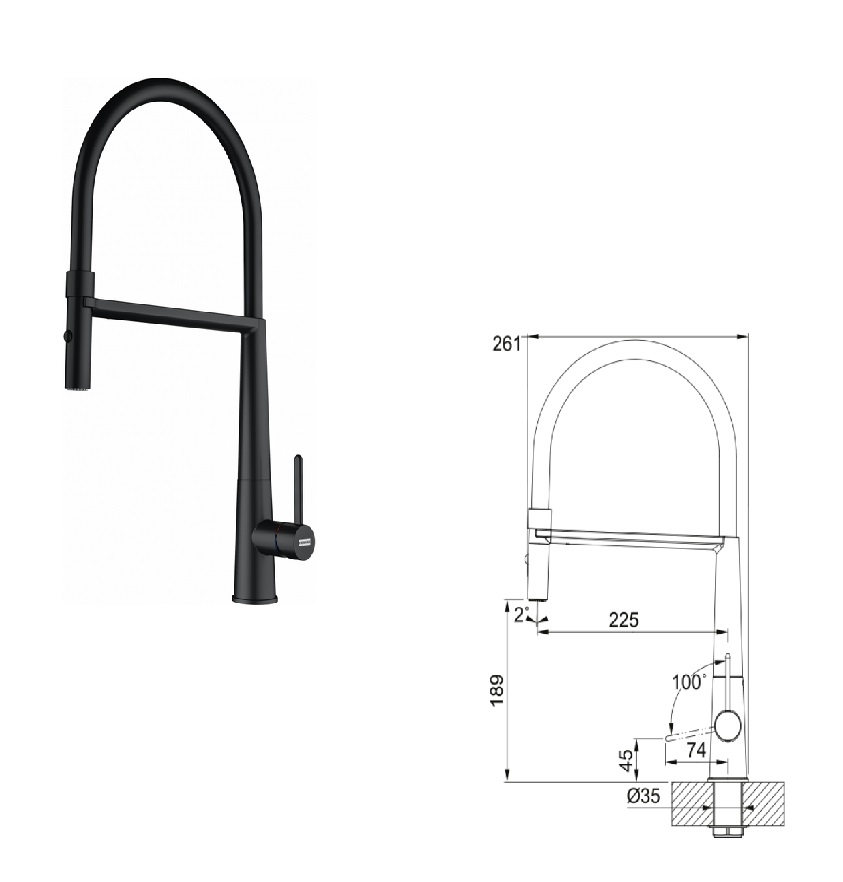 Franke FG 0598.901 – Dřezová baterie černá matná, sprcha, koncovka na hadici, Semi Pro, 115.0690.598