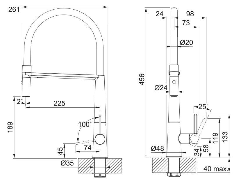 • Otočná o 360°: Maximální flexibilita a dosah do všech částí dřezu.