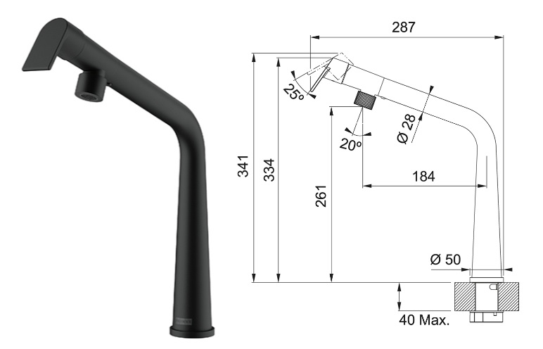 • Otočná o 120°: Pro pohodlné používání a snadné mytí dřezu.