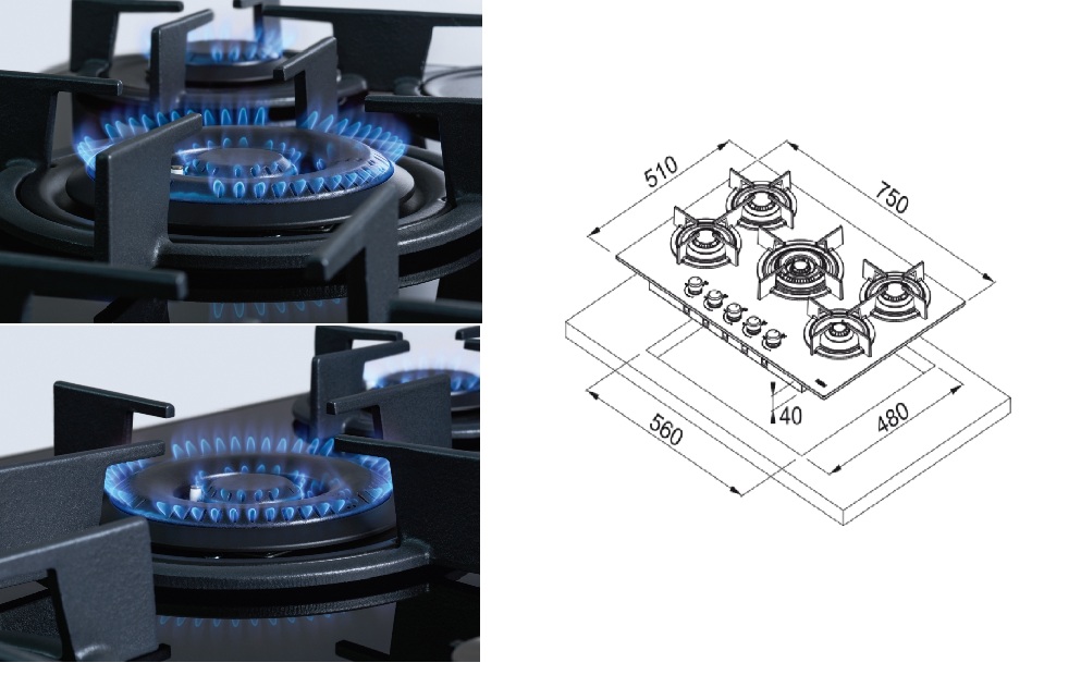 • Typ: Plynová varná deska (Plyn na skle)