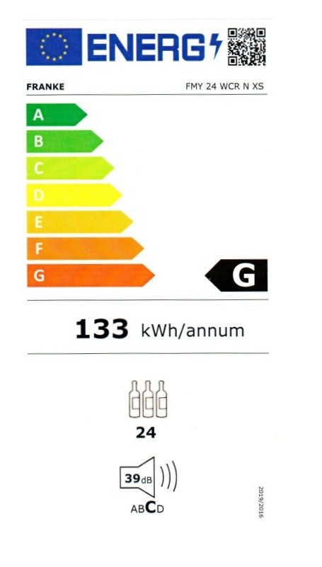 Vestavná vinotéka z řady Mythos. Kombinace černého skla a nerezi. Kapacita 66 litrů. Energetická třída G. Roční spotřeba energie 133 kWh/rok. Hlučnost 39 dB(A). Klimatická třída ST. 1 teplotní zóna s rozsahem 4–18 °C. Vybavena 3 dřevěnými policemi s kapacitou 24 lahví. Dveře se otevírají do strany systémem Push Pull s panty na pravé straně.