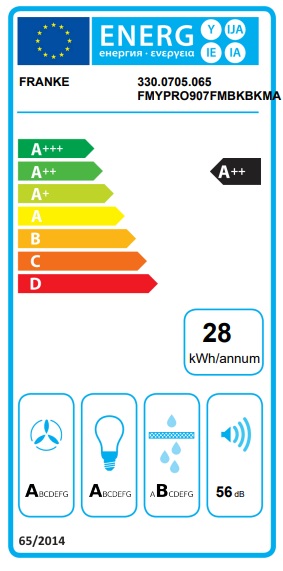 FRANKE FMY PRO 907 FM BK/BK MATT KL je prémiový šikmý komínový odsavač par z řady Mythos Pro, který představuje špičku v energetické účinnosti a chytrém ovládání. Vyniká vysokou Energetickou třídou A++.