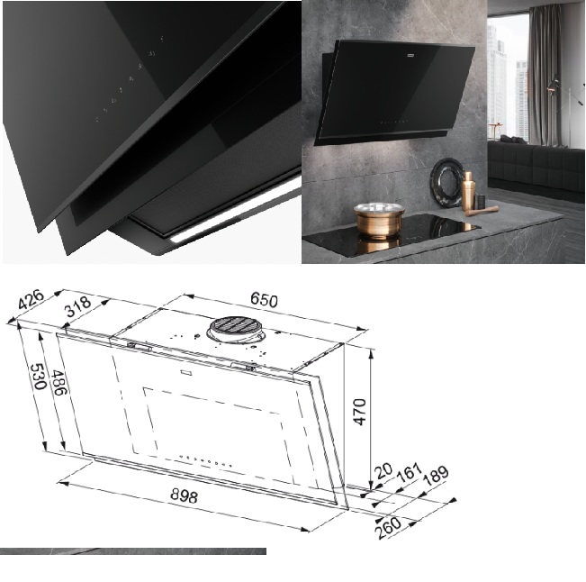 • Typ: Šikmý komínový odsavač.