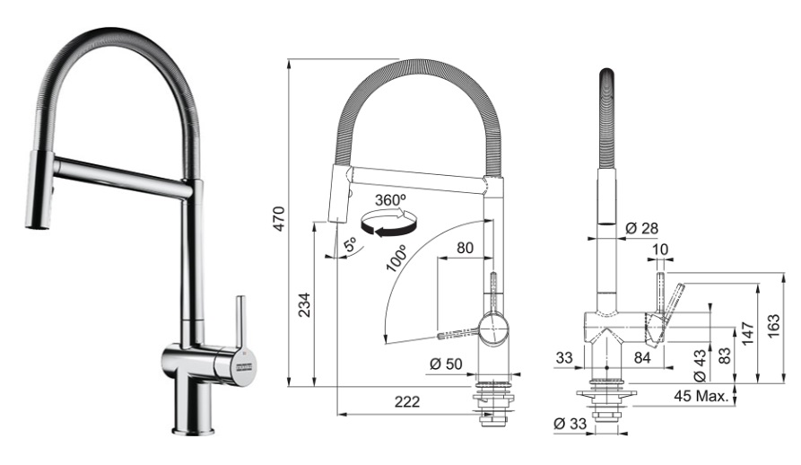 • Otočná o 180°: Pohodlné používání u dřezů s více komorami.