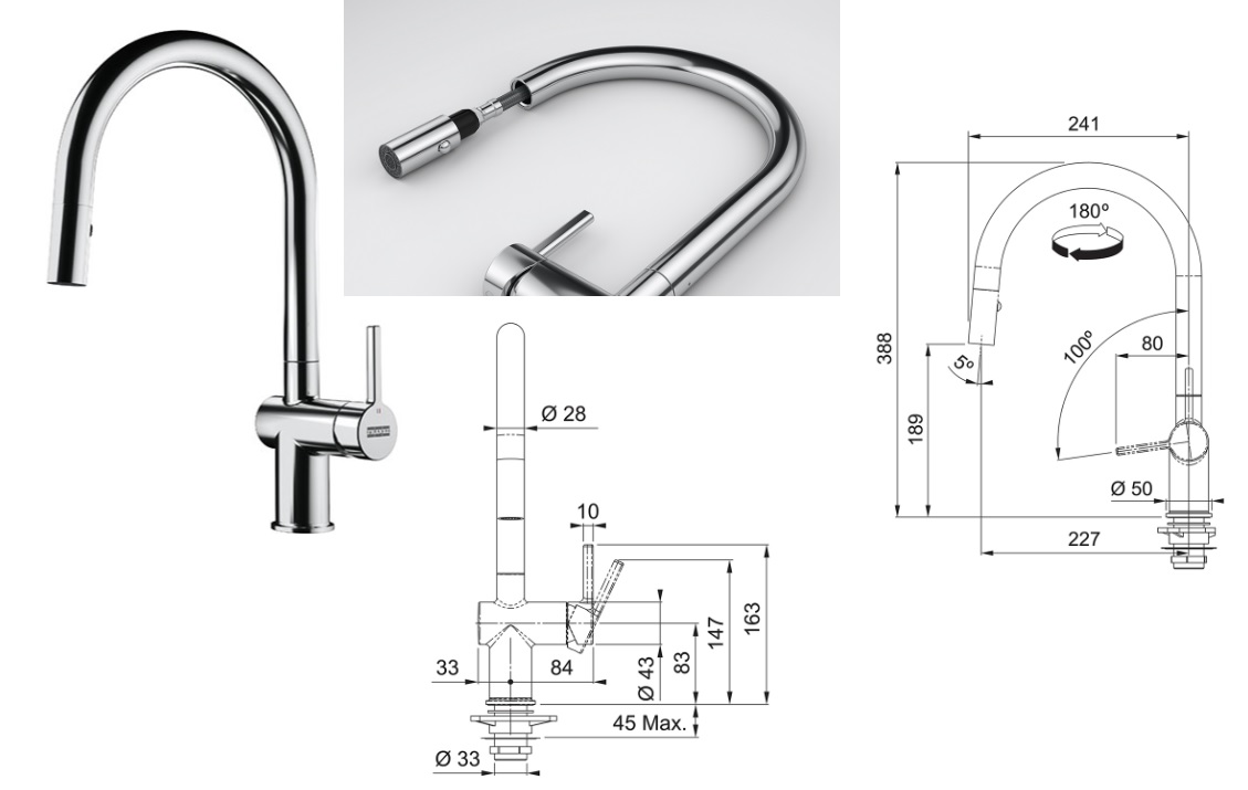• Otočná o 180°: Pohodlné používání u dřezů s více komorami.