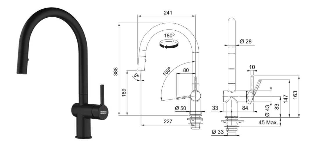 Franke Maris Active (Matná černá): Inovativní design a úsporné technologie.