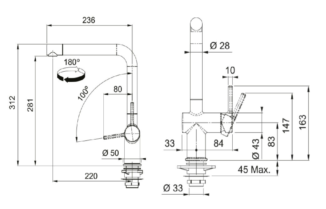 • Připojení: 45 cm dlouhé připojovací hadičky (?" připojení).