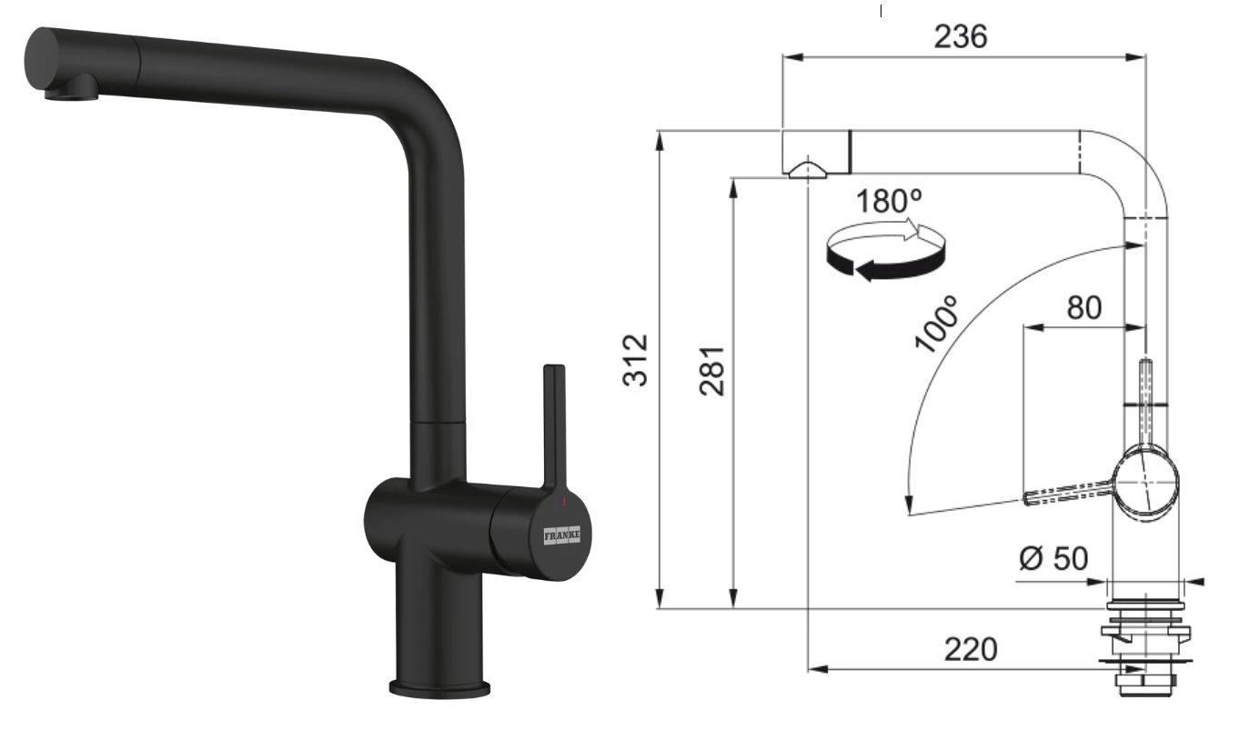 Franke FN 6100.901 Active New | Dřezová Baterie Černá matná, 115.0653.371