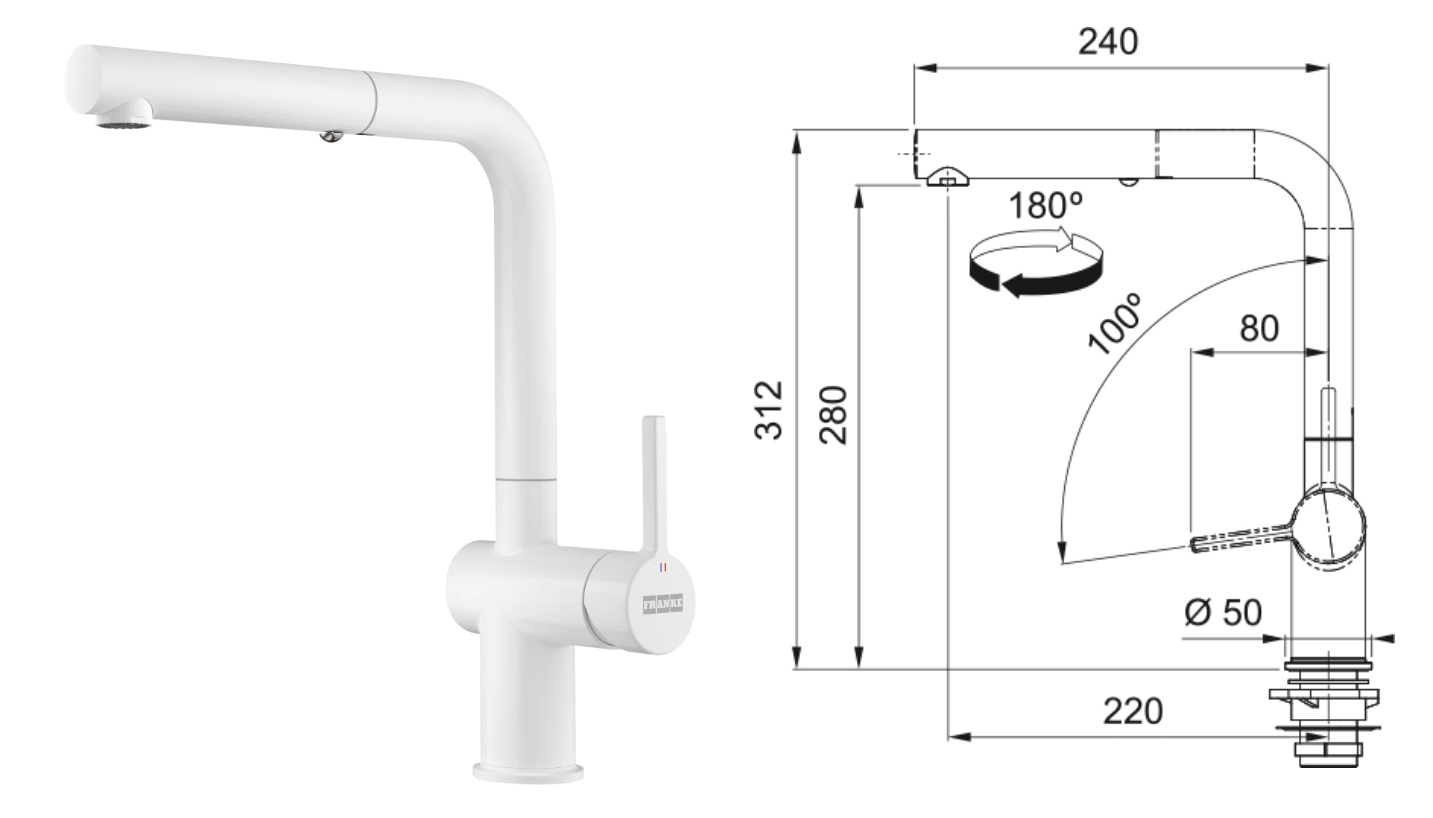 Franke FN 6110.902 - Dřezová baterie bílá matná, sprcha, vytahovací koncovka, Active New, 115.0653.383