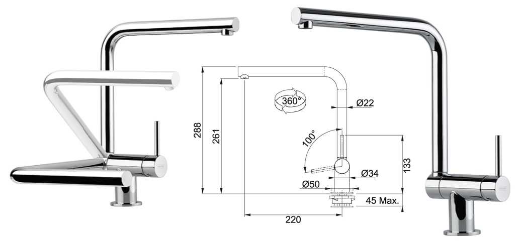 Franke FN 6560.031 - Dřezová baterie pod okno, sklopná - 65 mm, chrom, Active New, 115.0653.391