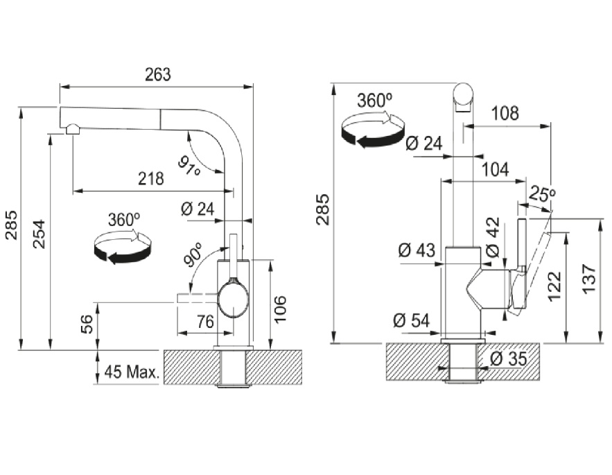 FRANKE FS 3235.082 LINA SMART je moderní dřezová baterie z řady Smart, která kombinuje elegantní L-tvarované ramínko s praktickou vytahovací koncovkou, to vše v provedení Sahara.
