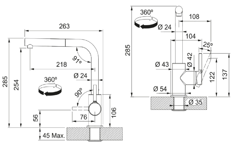 FRANKE FS 3235.424 LINA SMART je moderní dřezová baterie z řady Smart, která kombinuje elegantní L-tvarované ramínko s praktickou vytahovací koncovkou, to vše v provedení Kašmír.