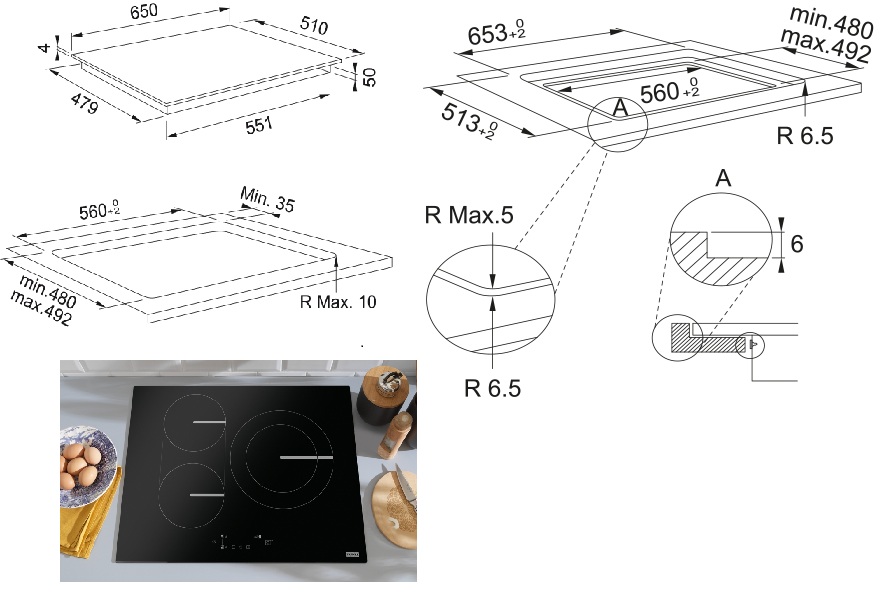 CATA GIGA 600 BK Indukční varná deska 60 cm AKCE se 4 zónami, které lze spojit do jediné giga zóny 40 cm. Má Booster pro každou zónu, časovač, 9 stupňů výkonu a 3 programy (rozmrazování, ohřev, vaření).