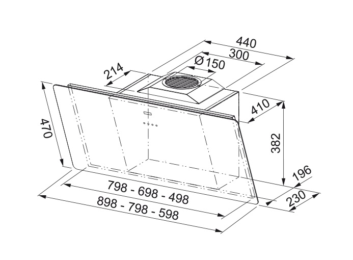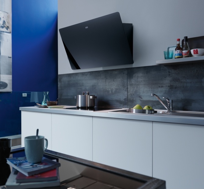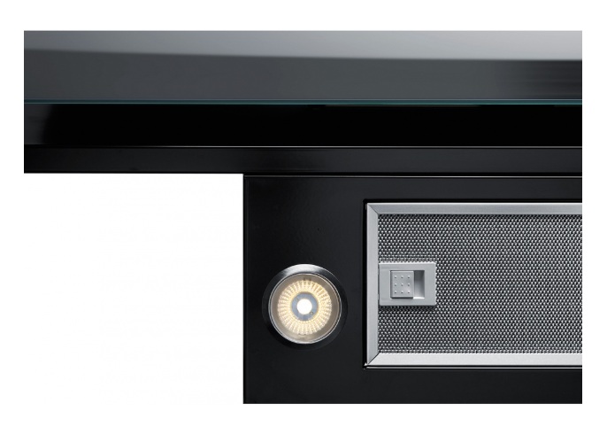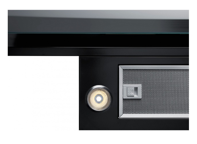 • Moderní design: Černé sklo a štěrbinové odsávání dodávají odsavači luxusní vzhled.