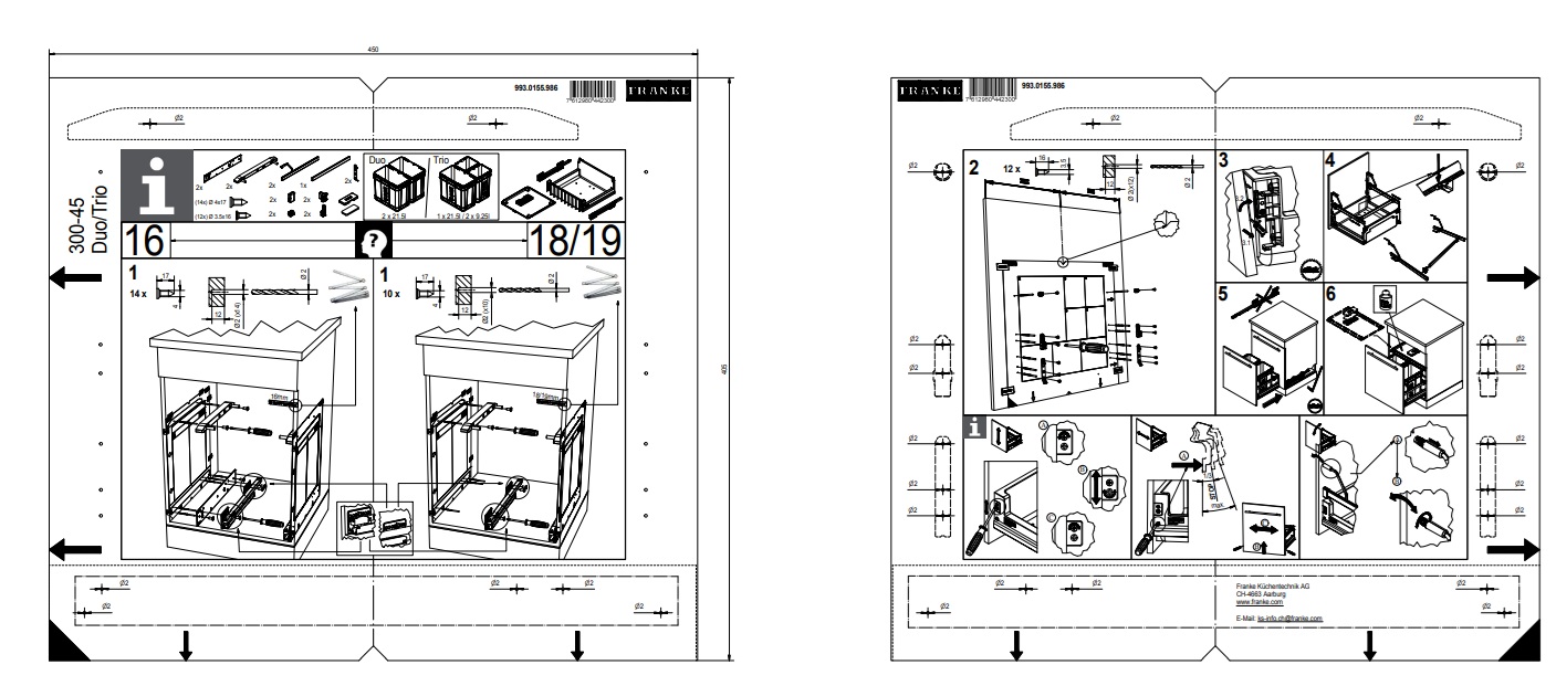 FRANKE Odpadkový koš 300-45 je prémiový třídící systém, navržený pro moderní kuchyně, s vysokou funkčností a účinnou neutralizací zápachu. Je určen pro instalaci do skříňky o šířce 45 cm.