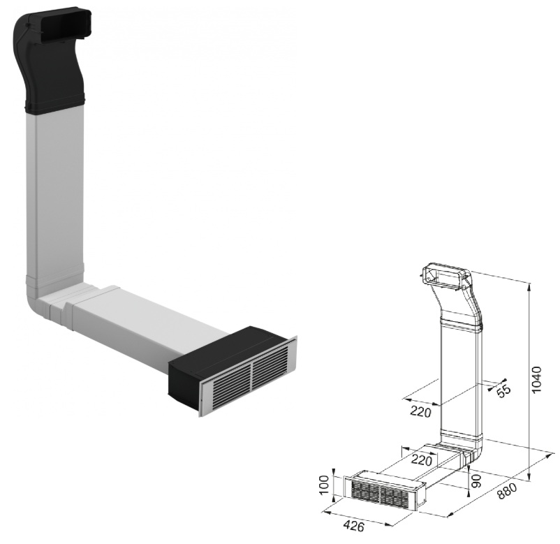 Sada pro recirkulaci přes mřížku (Sokl 10 cm). Obsahuje 1 pachový filtr. K odsavači par: FSM 709.