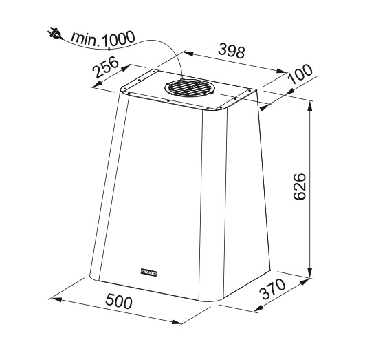 Franke FTU 3805 XS Turn - Válcová komínová digestoř, nerez, 620 m3/h, 335.0518.748