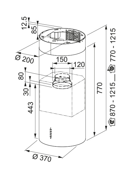 Elica Stone IX/A/33 + AKCE | Komínová Digestoř Válcová Nerez 33 cm, P61412862