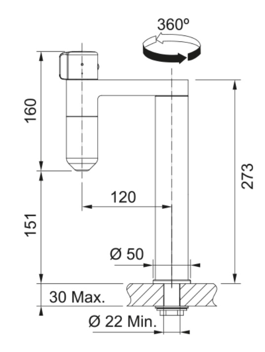 FRANKE Vital Tap 120.0621.230 chrom/gun metal: Kuchyňská baterie filtrační NENÍ VHODNÁ pro montáž do nerezových dřezů. INSTALOVAT POUZE SOUČASNĚ S FILTREM VODNÍCH SEDIMENTŮ NA PŘÍVODU VODY.
