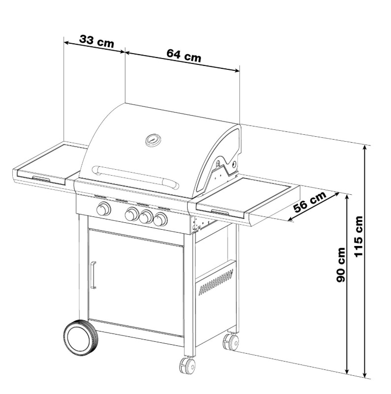 Campingaz Plancha EX3 s víkem: Plynový gril (7,5 kW). Smaltovaný litinový tál (2100 cm2), 3 nerezové hořáky, víko s teploměrem pro pečení, Piezo zapalování. Vozík s koly, úložným prostorem a skládacími stolky. Prodloužená záruka.