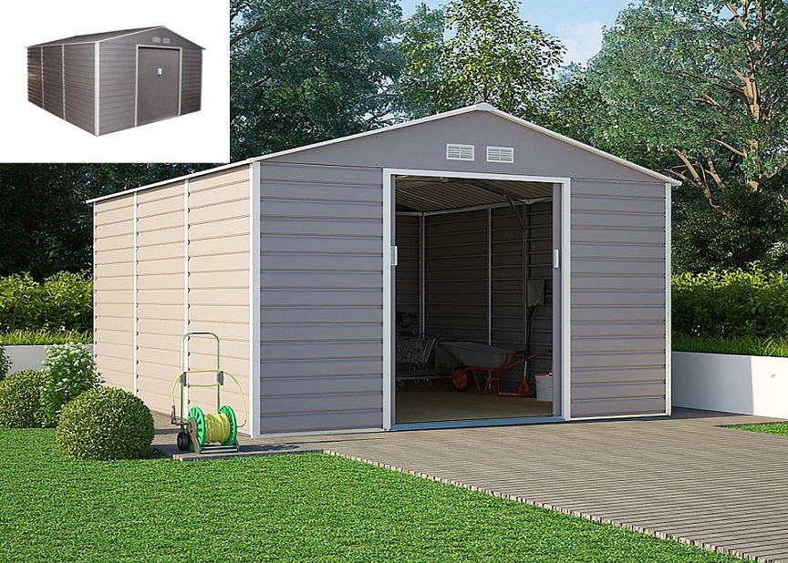 Zahradní domek G21 GAH 1300 – 340 x 382 cm, šedý – Kvalitní a bezúdržbové úložné řešení pro vaši zahradu za výhodnou cenu