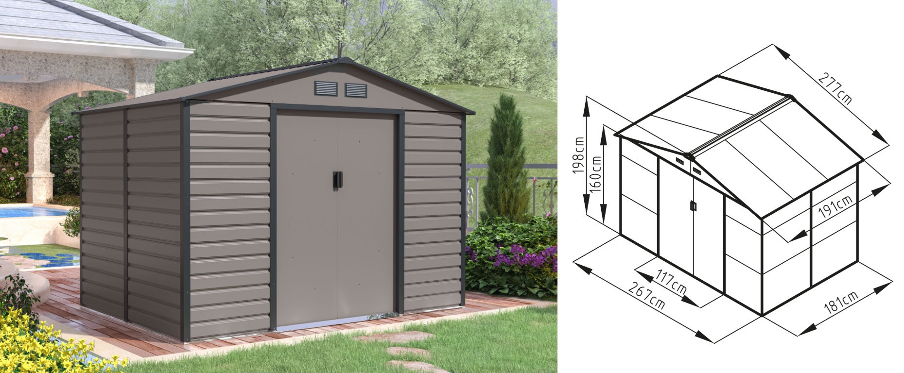 G21 GAH 529 šedý | Plechový Zahradní Domek na Nářadí | 2,7 x 1,9 m