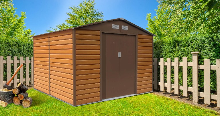 G21 GAH 884 hnědý | Plechový Zahradní Domek na Nářadí | 2,7 x 3,1 m, dekor dřeva, k montáži