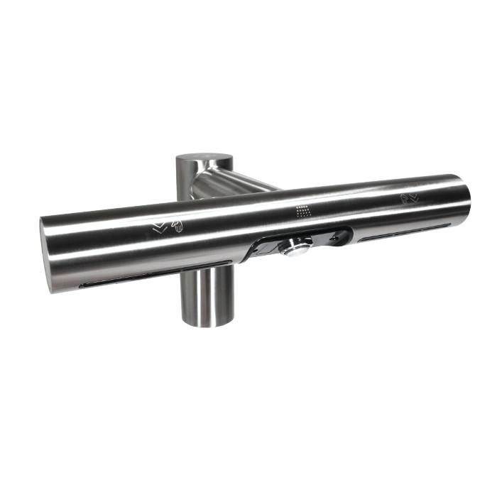 Inovativní design vysoušeče Jet Dryer AIRTAP - kulatá kombinuje tryskový vysoušeč s automatickou vodovodní baterií přímo v jednom těle. Ruce si tak můžete pohodlně umýt i vysušit na jednom místě přímo v umyvadle, což zajišťuje plynulý provoz bez front. Díky bezkontaktnímu ovládání a integrované HEPA filtraci představuje tento model špičku v hygienických řešeních pro moderní toalety.