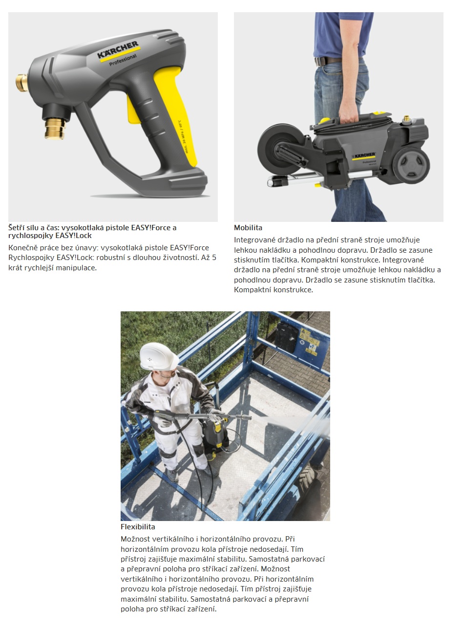 Vážený zákazníku, chápeme, že reklamace může být nepříjemná a časově náročná. Jako autorizovaný partner KÄRCHER v ČR s více než 19 lety zkušeností garantujeme, že každou reklamaci vyřídíme pečlivě, včas a profesionálně. Pro rychlejší vyřízení nás prosím kontaktujte e-mailem a uveďte informace o závadě. Vyplnění reklamačního protokolu (včetně čísla faktury a výrobního čísla) celý proces usnadní. Formulář najdete v sekci Záruční podmínky (v zápatí eshopu). Po jeho odeslání Vás kontaktujeme a domluvíme další postup, a to buď svoz výrobku do centrálního servisu, nebo návštěvu technika u Vás. Tento výrobek je určen pro podnikatelské použití. Nabízíme také prodlouženou záruku 1+2 roky na vybrané produkty KÄRCHER, pokud registraci provedete do 14 dnů od nákupu. Více informací a registrační formulář najdete na stránkách výrobce: https://www.karcher.cz/cz. Upozorňujeme, že prodloužené záruky a komfortní servis se nevztahuje na výrobky dovezené ze zahraničí nebo zakoupené v nákupních galeriích ze zahraničí. Věříme, že výrobky KÄRCHER i servis po celé ČR budou odpovídat Vašim očekáváním a těšíme se na spolupráci! Děkujeme za důvěru.