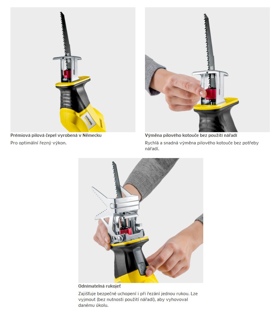 Výměna pilového listu bez nářadí: Rychlá a snadná výměna listu pro maximální efektivitu.