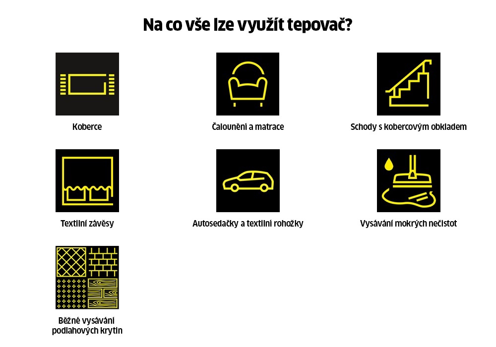 | Podlahové mycí stroje | Vysokotlaké čističe s ohřevem | Vysokotlaké čističe bez ohřevu | Průmyslové vysavače s oklepem | Hotelové vysavače | Čističe koberců |